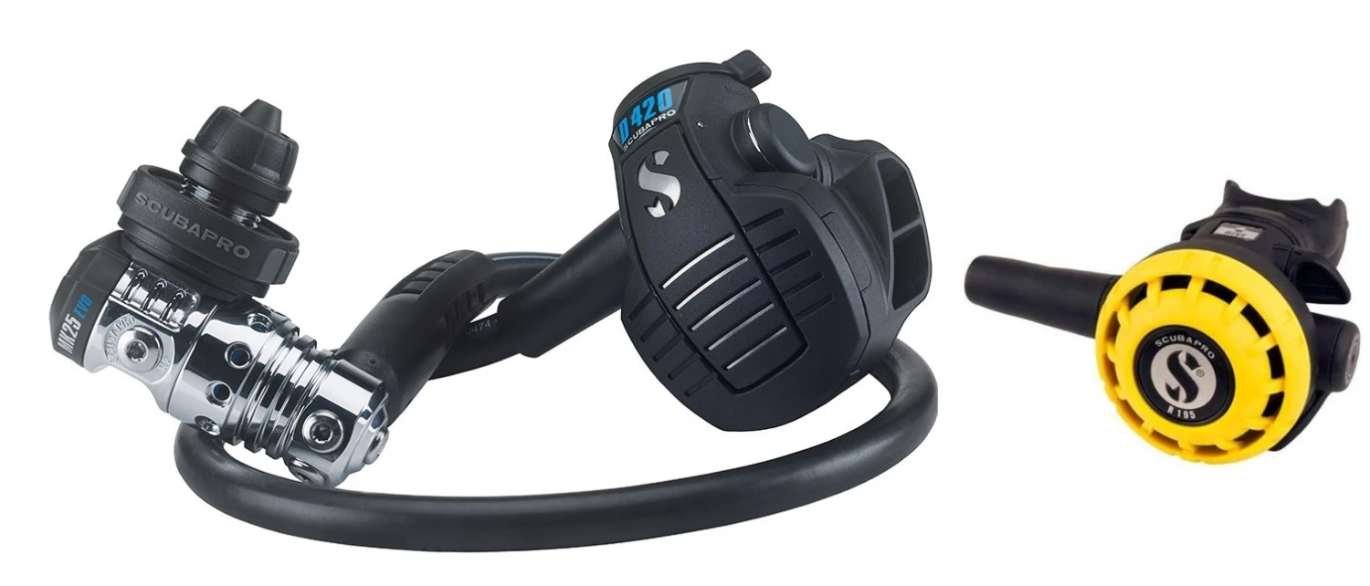 In der Kombination des ikonischen Designs der D-Serie mit den neuesten Fortschritten in der Atemreglertechnologie haben die SCUBAPRO Ingenieure in Sachen Qualität, Zuverlässigkeit, Leistung und Stil einen Atemregler des 21. Jahrhunderts entwickelt. Der neue D420 verfügt über ein ausbalanciertes Ventil, das im Gehäuse durch eine vollständig aus Metall bestehende Struktur gestützt wird. Das sogenannte Steuerventilfür progressiven Luftstrom liefert reichlich Luft für eine optimale Atemleistung, diedurch ihre Leichtigkeit dem Atmen an der Oberfläche gleicht. Das einzigartig geformte Nylon-Gehäuse mit Glasfaserverstärkung ist extrem robust und sorgt durch die mögliche Anbringung des Niederdruckschlauchs links oder rechts für eine maximale Konfigurationsflexibilität. Ein neues Dive-/Pre-Dive-System umfasst einen Schalter mit Daumenregler oben am Gehäuse, um die Richtung des austretenden Luftstroms anzupassen. Der hoch effiziente Luftduschenknopf verleiht dem D420 einen neuen, einzigartigen Look und ist aufgrund eines neuen Konzepts ein technisches Juwel. Zusammen mit der bewährten ersten Stufe MK25 EVO mit ausbalanciertem Kolben ergibt dies ein Atemreglersystem für passionierte Taucher und moderne SCUBAPRO Enthusiasten.